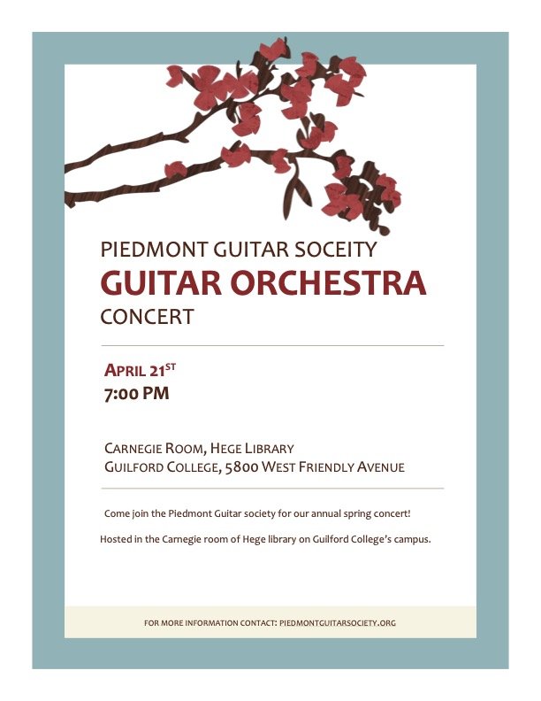 Friends of PGS eligible for discounted tickets to the Greensboro Symphony’s presentation of Brubek’s Double Guitar Concerto on April 11th, 2025.